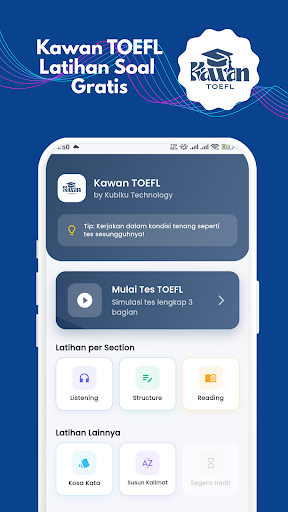 Kawan TOEFL Latihan Soal is a specialized application developed by Kubiku Technology, aimed at individuals preparing for the TOEFL PBT/ITP exam. The app provides a rich repository of practice questions designed to enhance your English language skills, particularly in areas of Structure, Reading, and Listening. With thousands of practice questions available, Kawan TOEFL offers a convenient and efficient way to prepare for the exam on the go, eliminating the need for bulky textbooks.